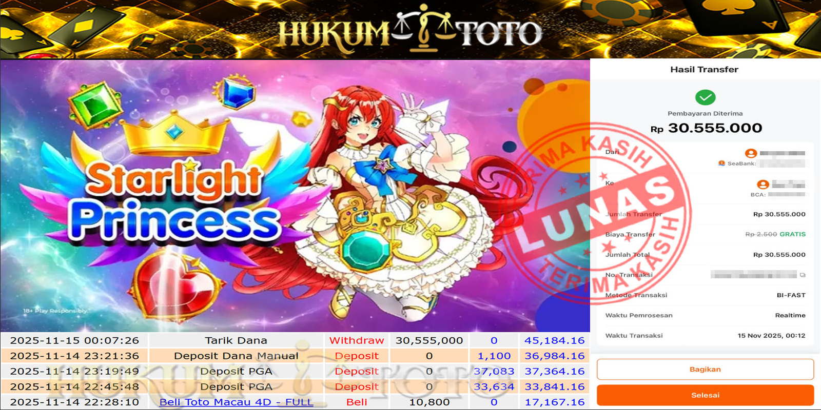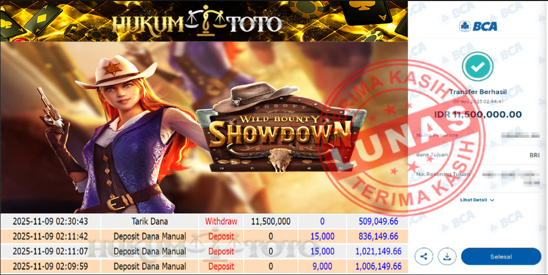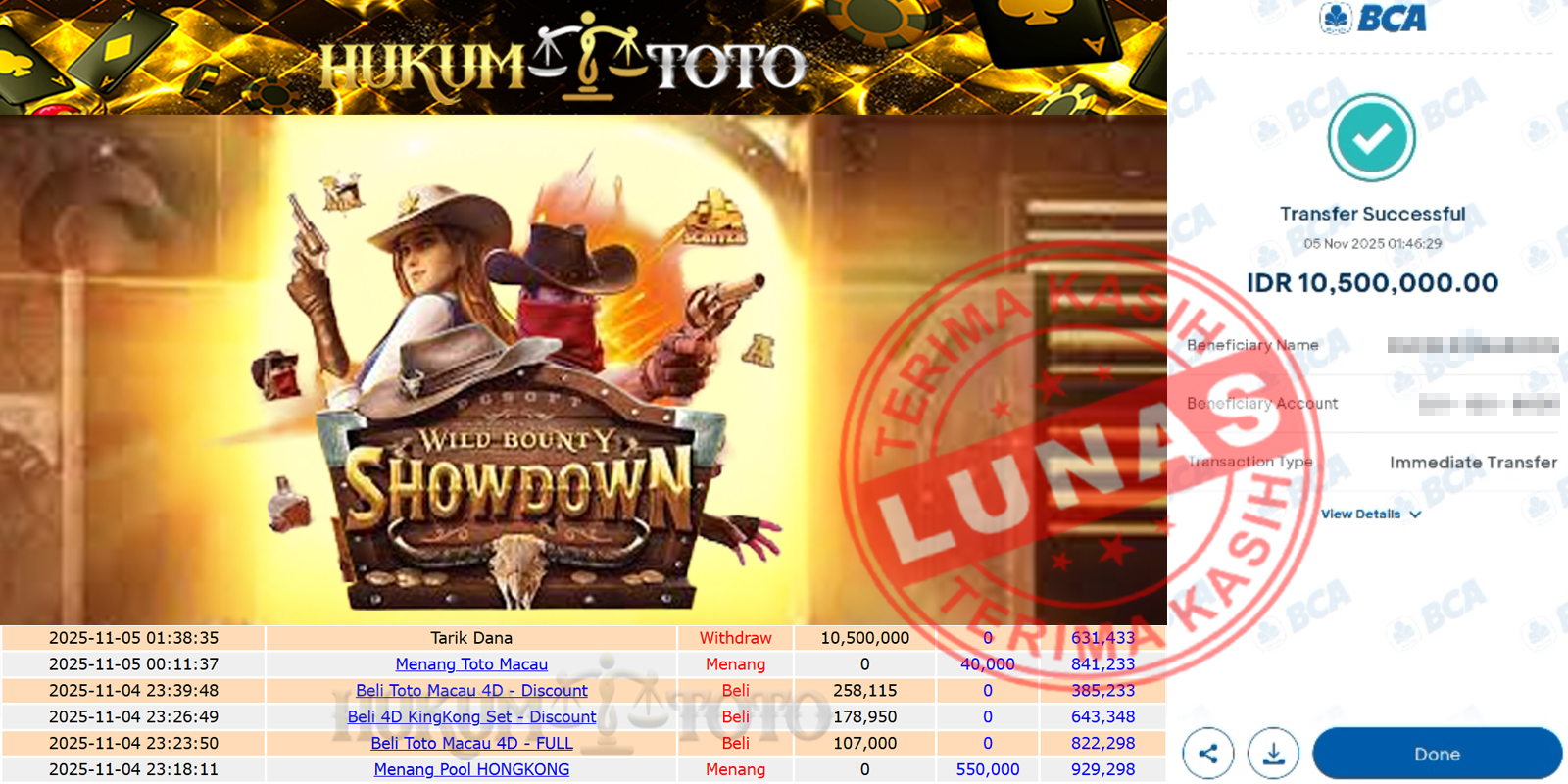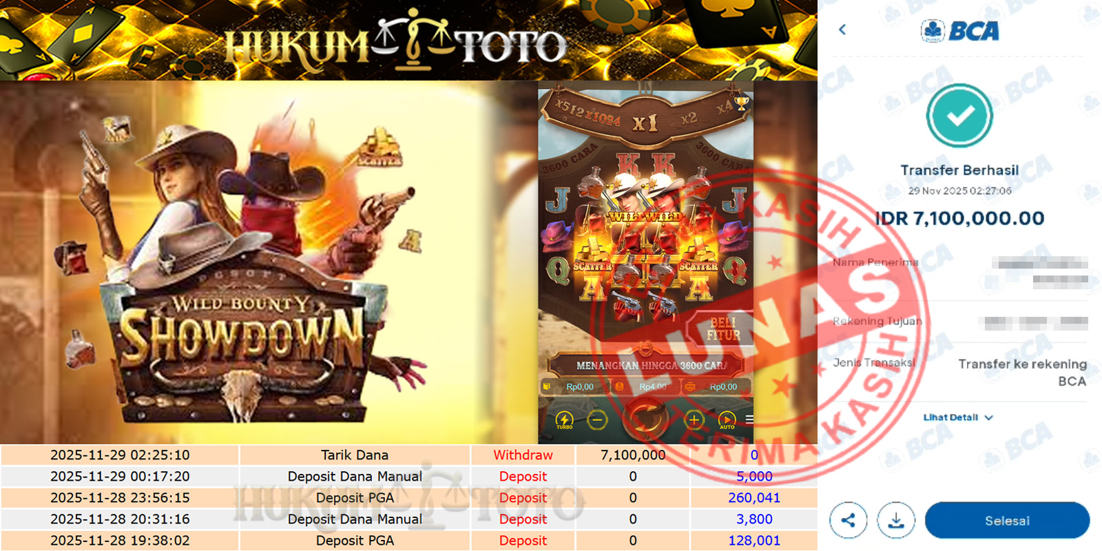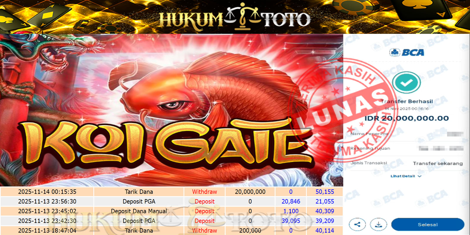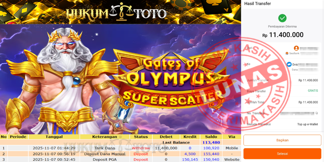 Bukti pembayaran Player setia HUKUMTOTO