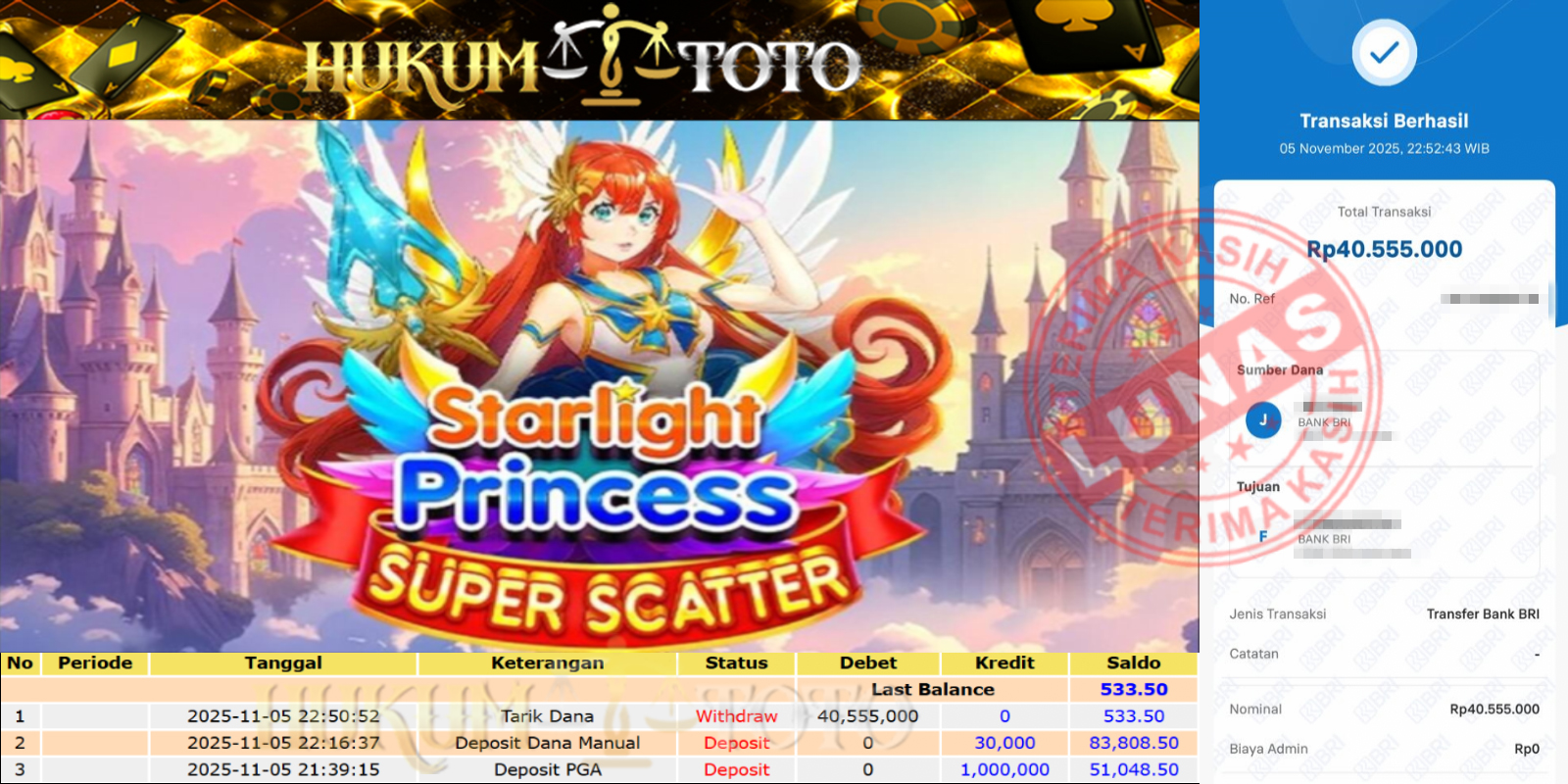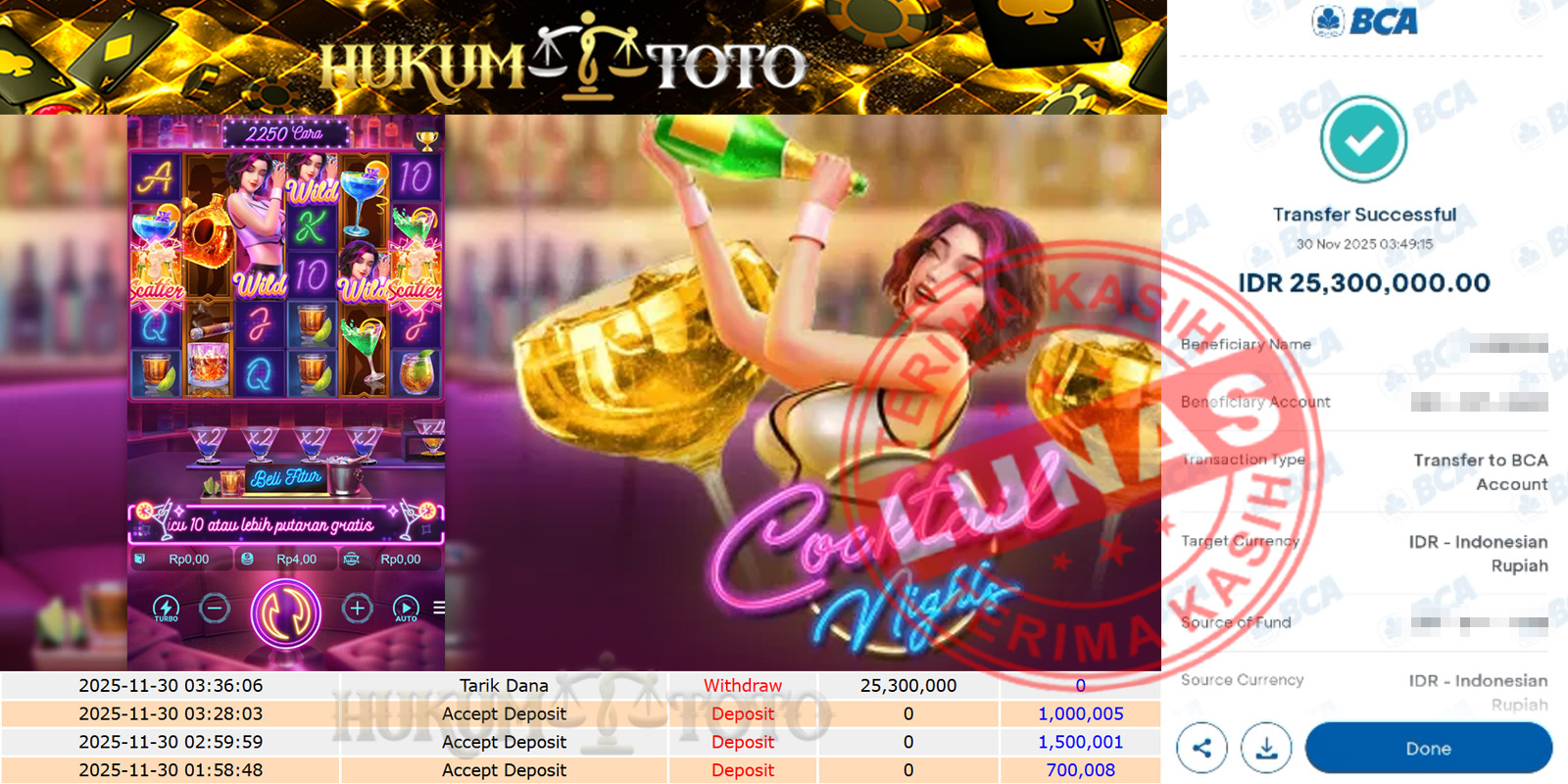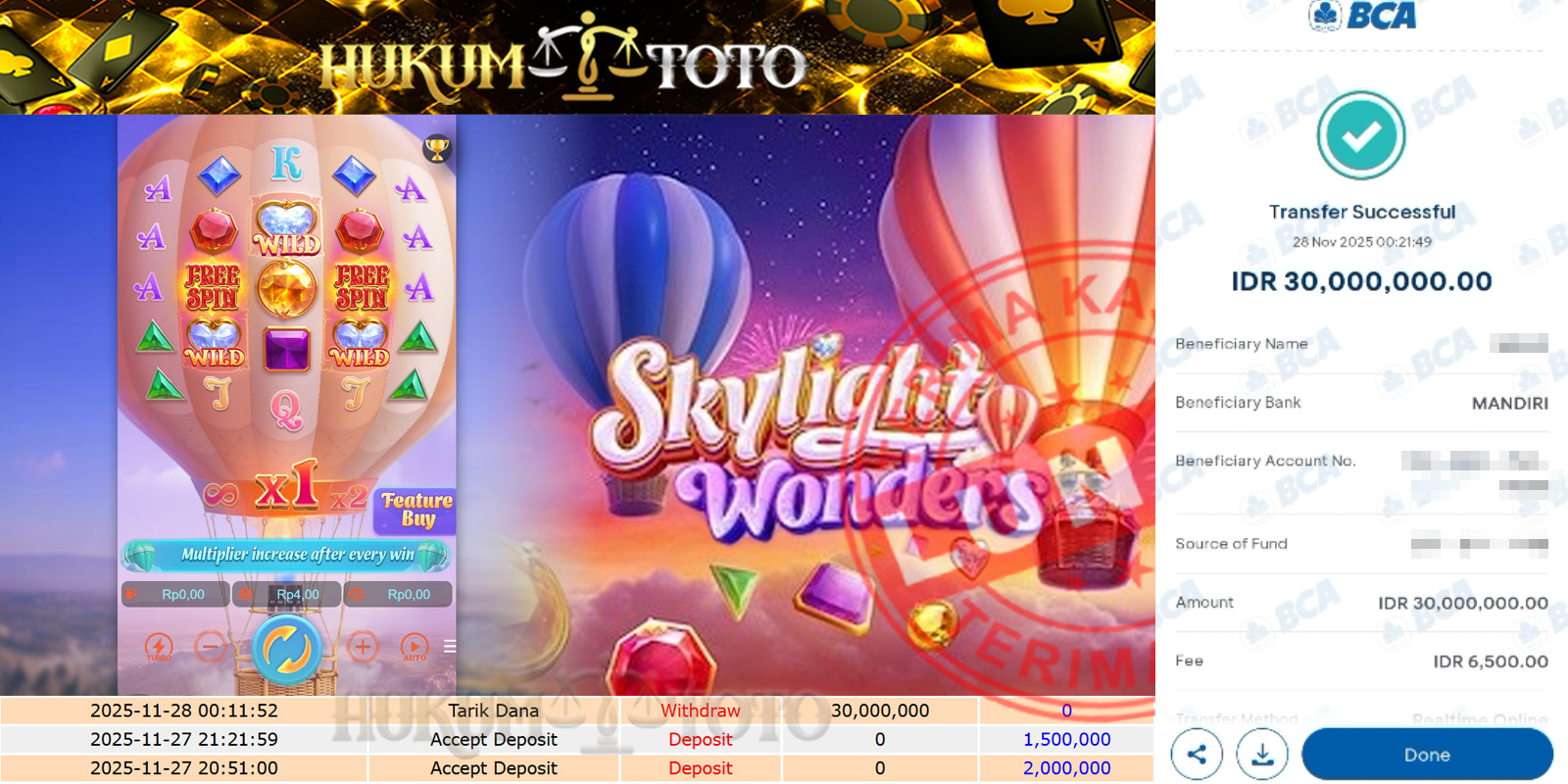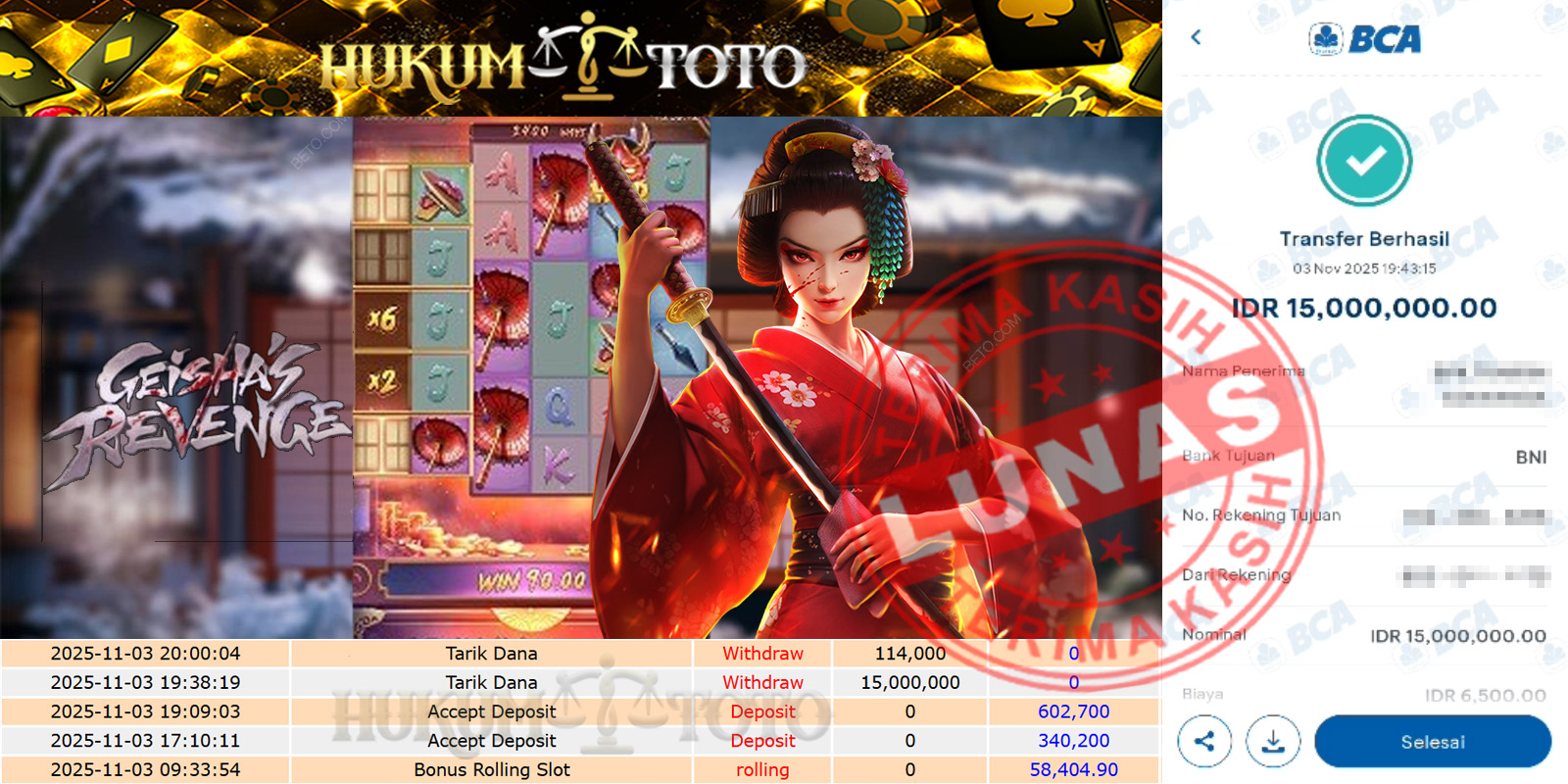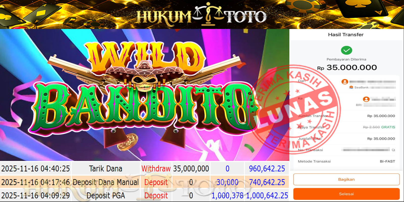 Bukti pembayaran Player setia HUKUMTOTO