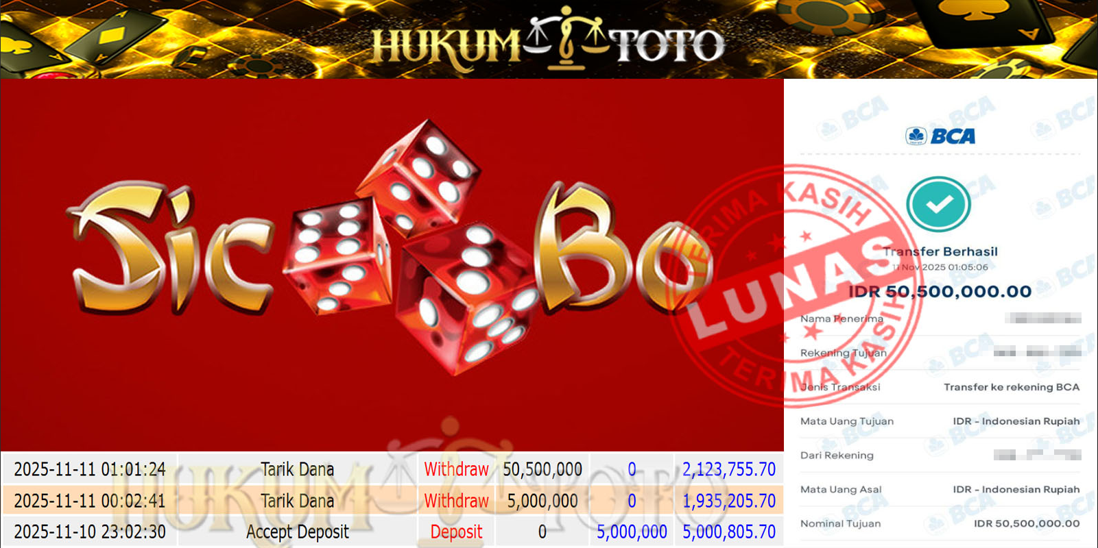 Bukti pembayaran Player setia HUKUMTOTO