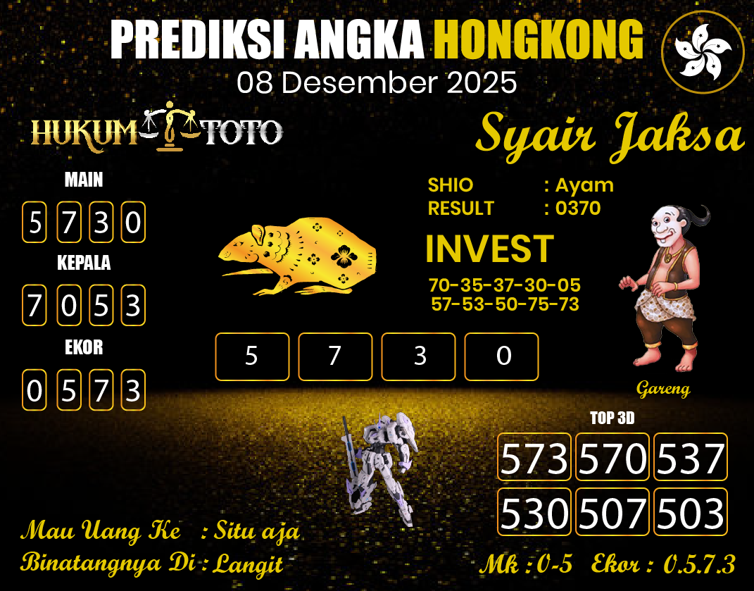 Mencari angka jitu keluaran hongkong di Prediksi HukumToto terus-menerus selalu dapat membantu banyak bettor. Lantaran, bukan cuma siapkan result togel dan prediksi togel yang komplet dari beberapa pasaran, di Prediksi HukumToto pula kalian dapat mendatangkan atau menganalisis buku mimpi togel, di mana semasing tipe mimpi yang pas abjad diartikan pada tipe angka. Baik itu buku mimpi 2D, 3D hingga sampai 4D.