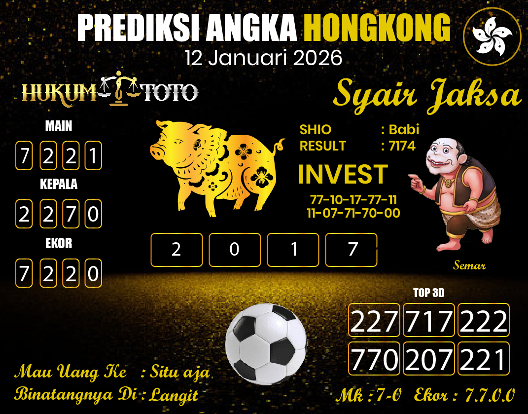 Mencari angka jitu keluaran hongkong di Prediksi HukumToto terus-menerus selalu dapat membantu banyak bettor. Lantaran, bukan cuma siapkan result togel dan prediksi togel yang komplet dari beberapa pasaran, di Prediksi HukumToto pula kalian dapat mendatangkan atau menganalisis buku mimpi togel, di mana semasing tipe mimpi yang pas abjad diartikan pada tipe angka. Baik itu buku mimpi 2D, 3D hingga sampai 4D.